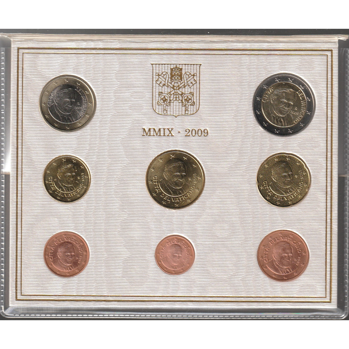 Zberateľská sada obehových EURO mincí vydaná Vatikánom v roku 2009 počas trvania pontifikátu pápeža Benedikta XVI., s motívom jeho portrétu.