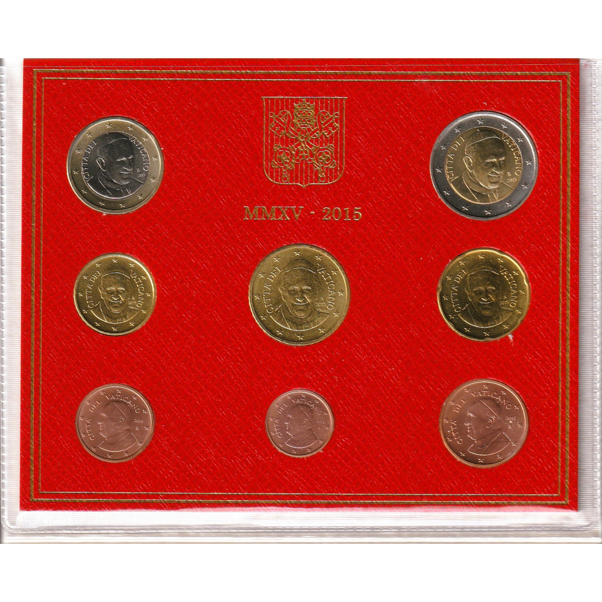 Zberateľská sada obehových EURO mincí vydaná Vatikánom v roku 2015 počas trvania pontifikátu pápeža Františka, s motívom portrétu pápeža.