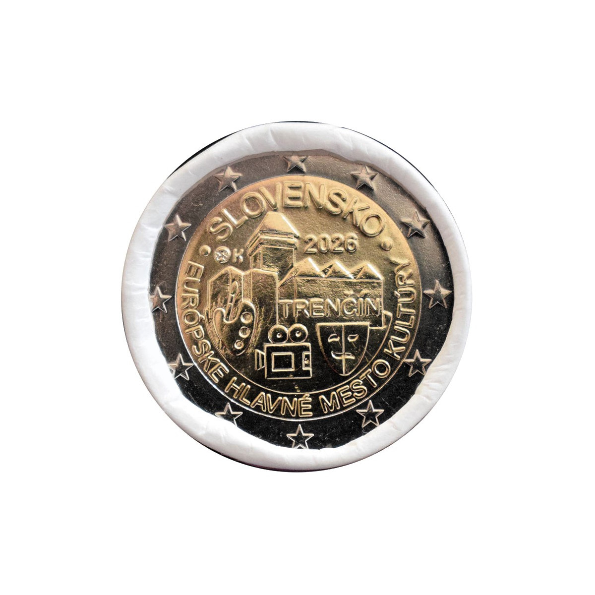 Pamätná 2 Euro minca Slovenska, emitovaná v roku 2026. Táto zberateľská eurominca bola vydaná s motívom Európske hlavné mesto kultúry pre rok 2026 - mesto Trenčín.