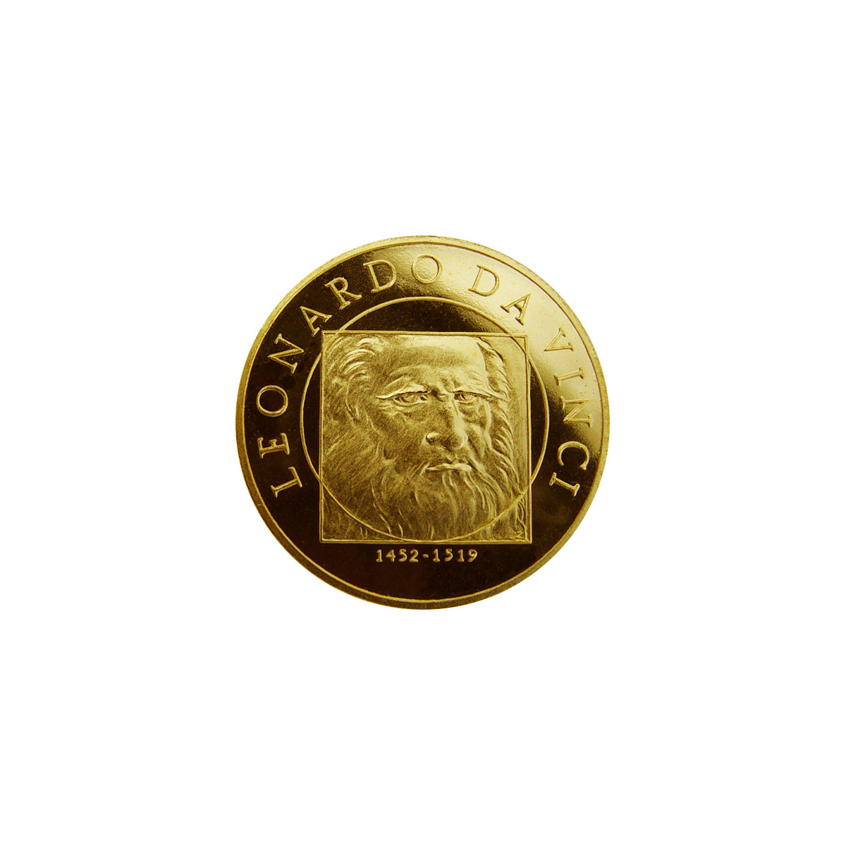 Zlatá medaila vo veľkosti 2-dukátu (7g) Leonardo da Vinci a Monna Lisa o rýdzosti Au 986/1000.